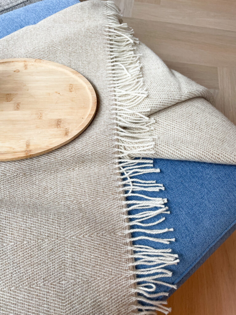 Ik heb gekozen voor een rustige neutrale basis in de stof van de bank en de gordijnen.
