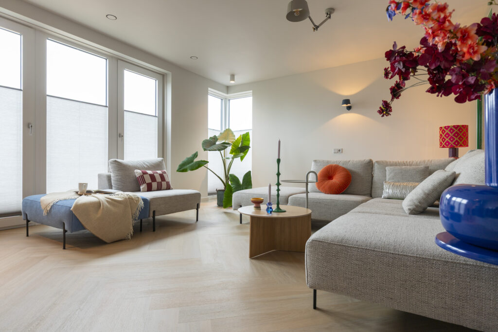 Met persoonlijke accessoires en meubels krijgt de zithoek een eigen karakter.
