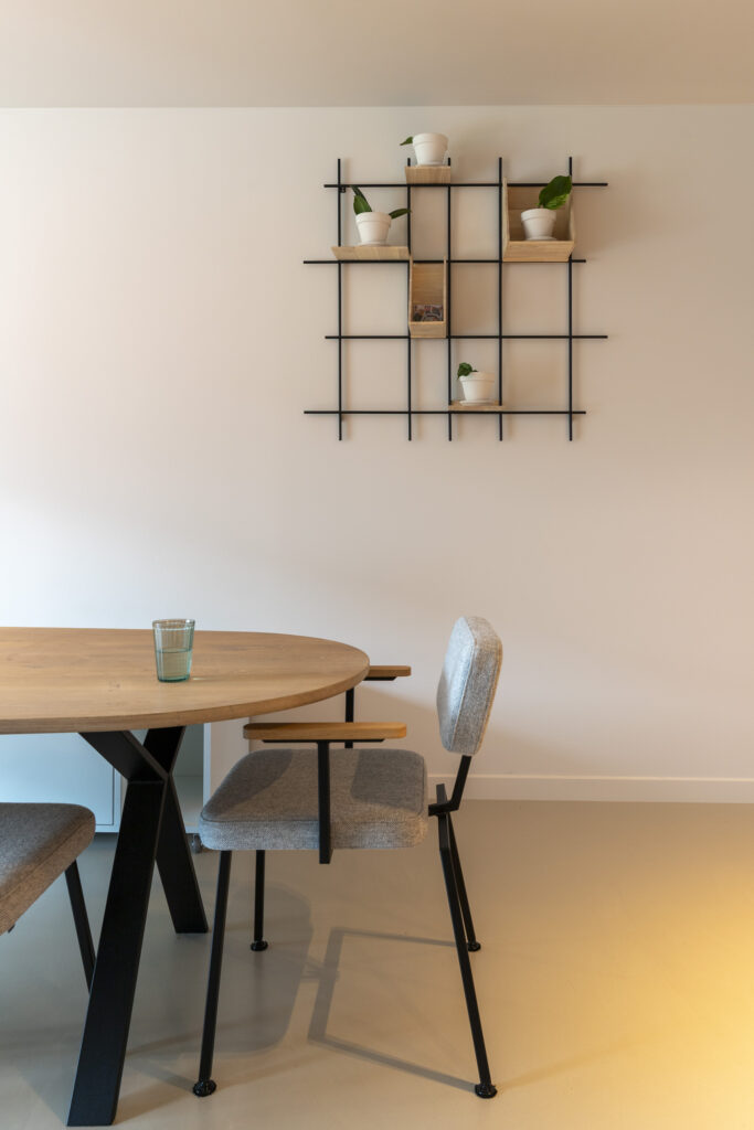 De eetkamerstoelen van studio Henk zorgen voor een strakke belijning.